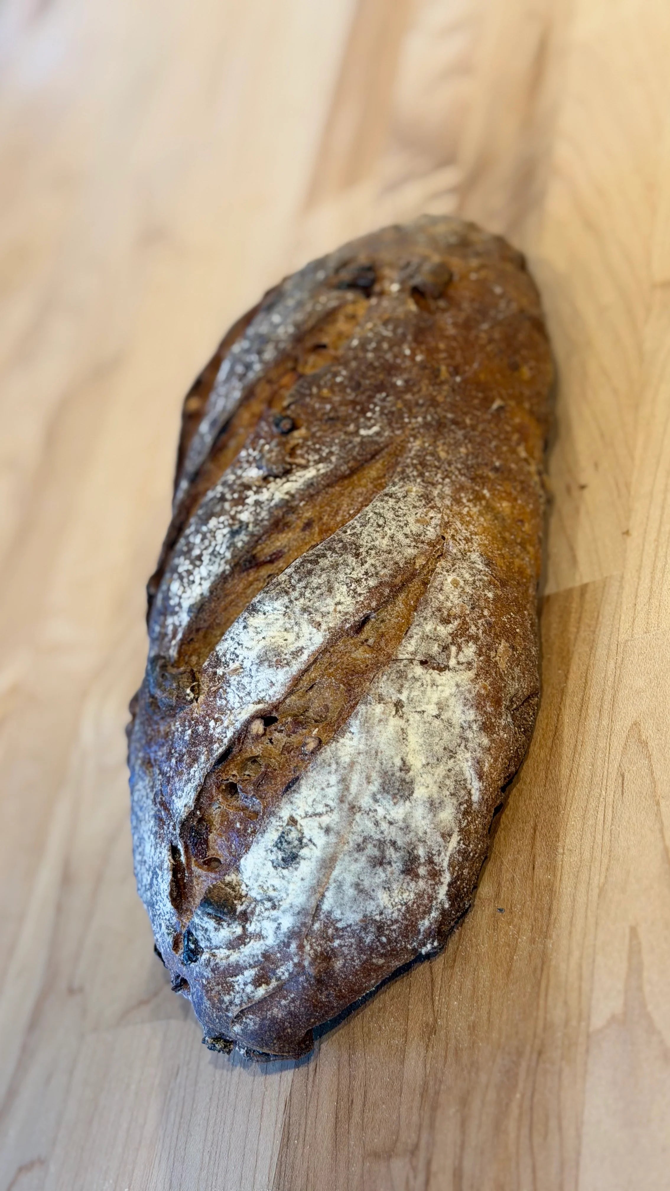 This loaf is packed with dried cranberries and pecans. During the mixing process, the pecans are crushed perfectly throughout the dough, distributing the flavor with every bite.