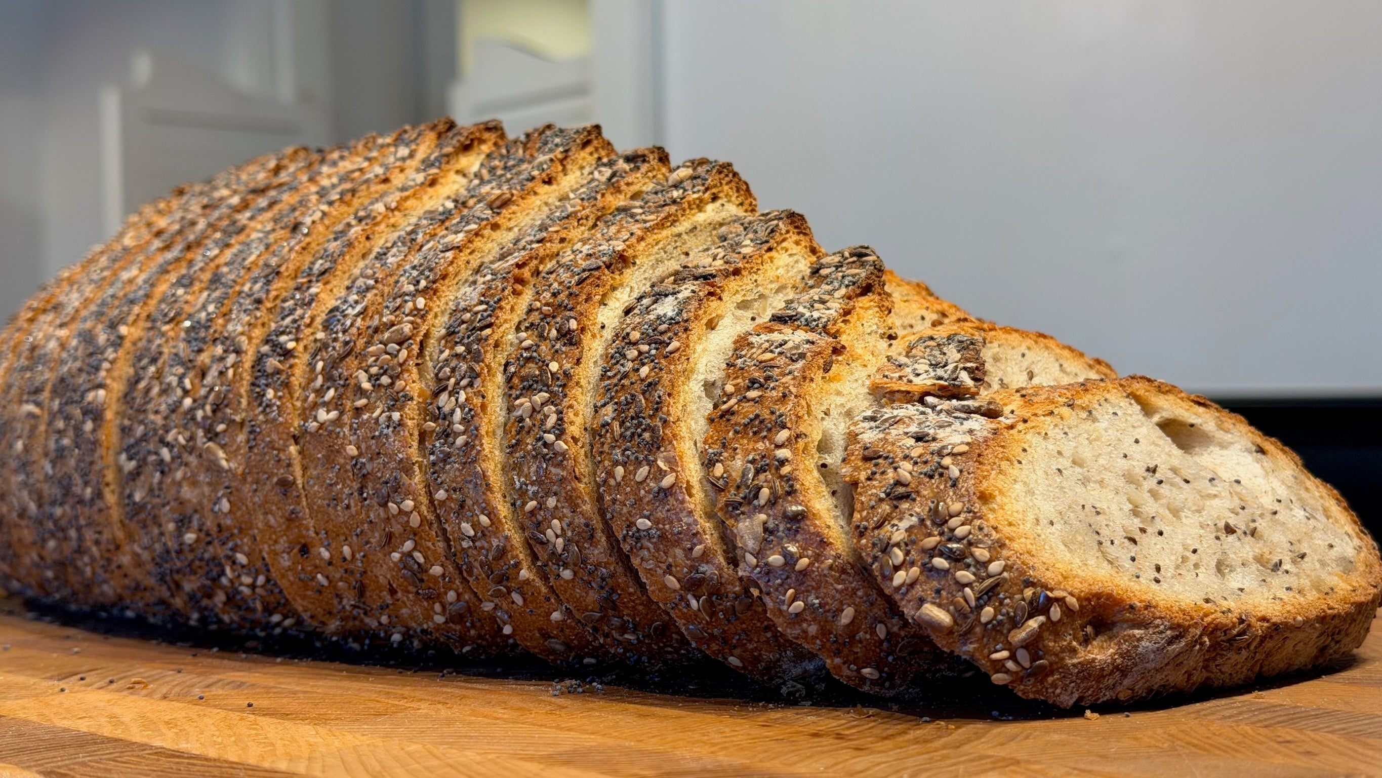 Made with flax, sesame, sunflower, poppy, and a hint of caraway seeds, soaked and mixed into the dough, naturally increasing the hydration of the bread and giving it a profoundly rich flavor. Voted "Best Specialty Bread in New York City" by Frenchly Morning